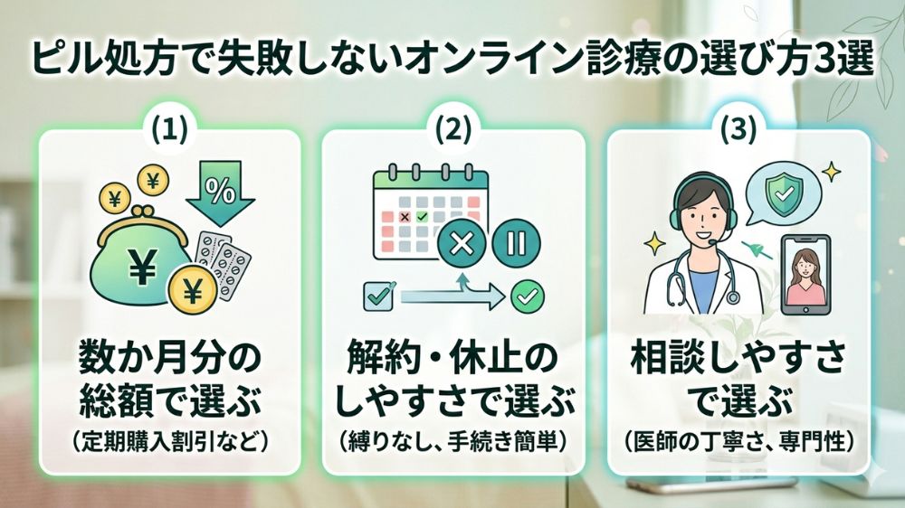 オンラインピル処方を利用する前に、3つのポイントを押さえておくと失敗しにくいです。