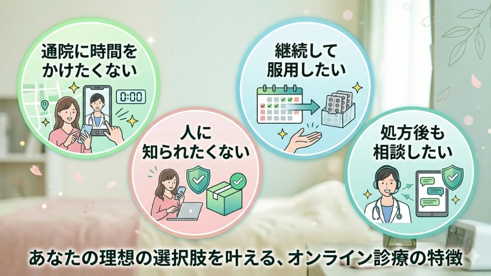 特にピルは毎回の通院が地味に負担になりやすいので、「時間を使わないで済む」というだけでかなりラクになります。